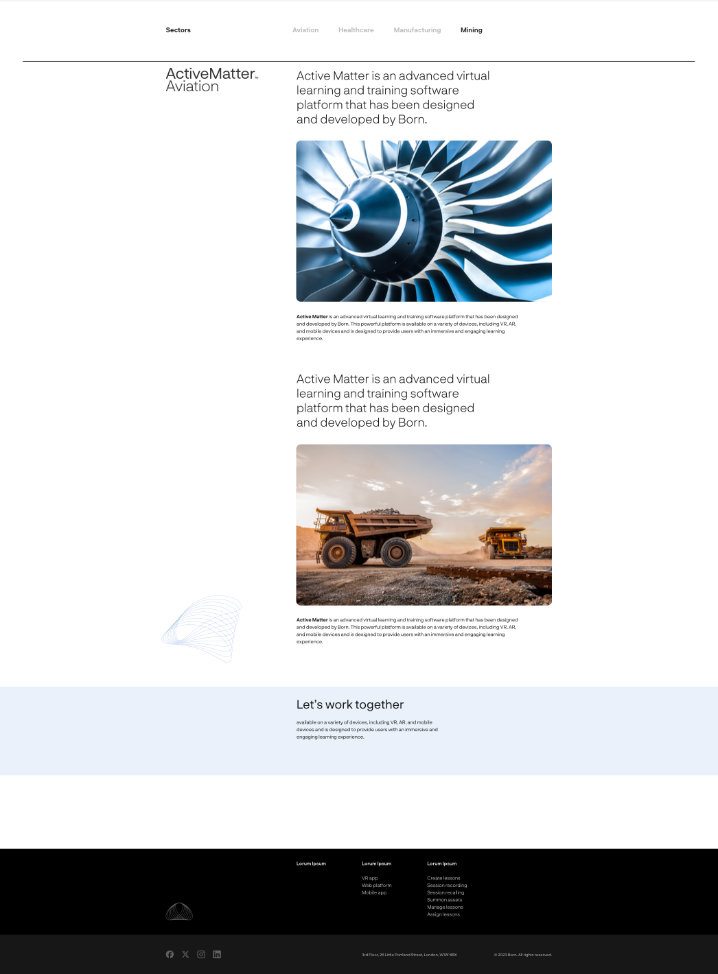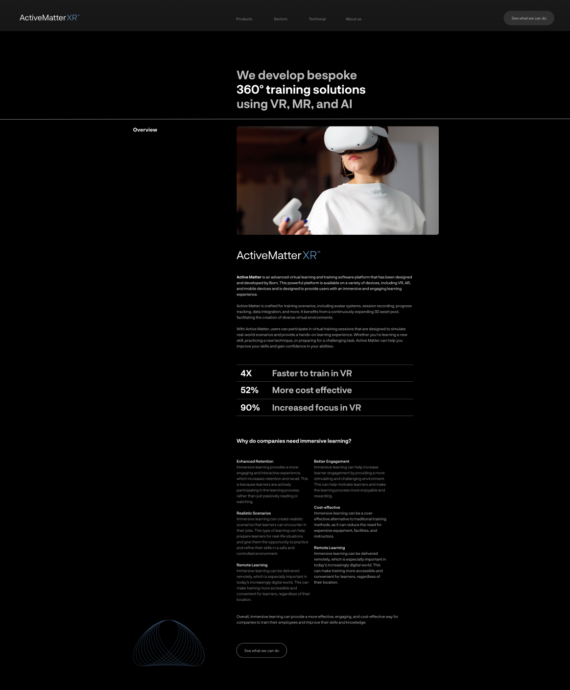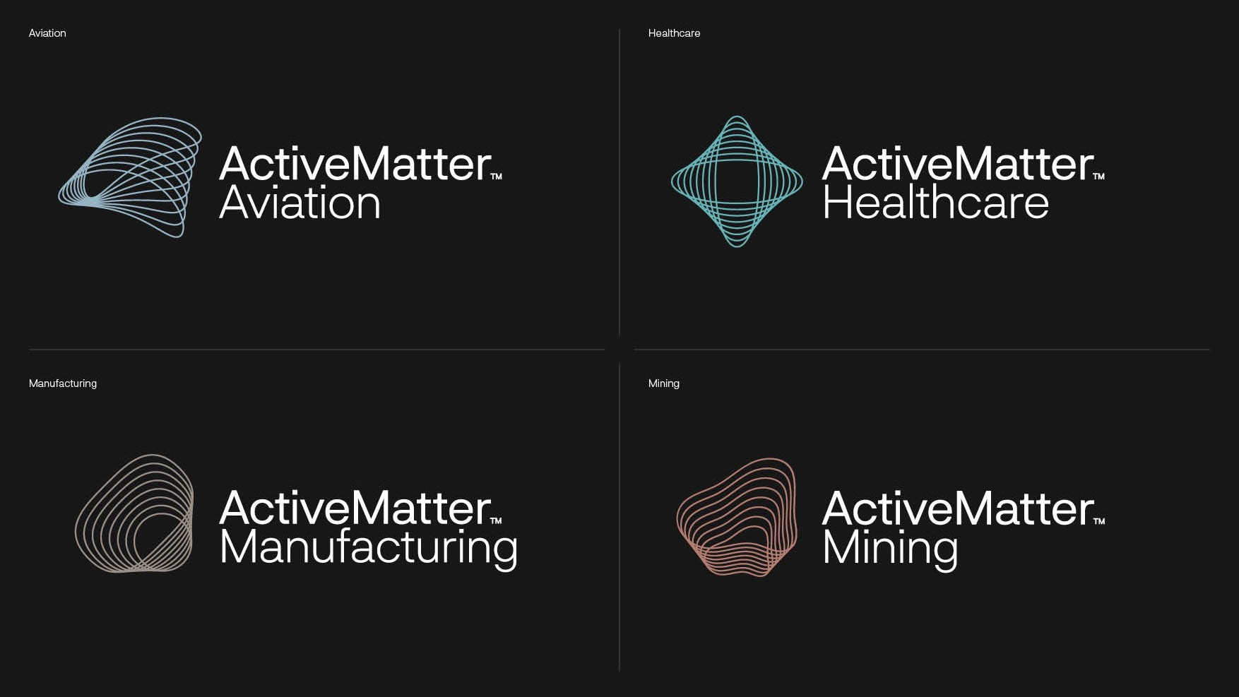 Active Matter XR is a virtual reality training platform built from the ground up to deliver immersive learning experiences. Because the product lives inside VR, the brand needed to feel 3D, dynamic and limitless. Our core idea was a modular, shapeshifting icon system that expresses the infinite possibilities of immersive worlds. The icon system also supported Active Matter XR sub brands by industry, such as Active Matter Aviation, Healthcare, Manufacturing and Mining. We carried this distinctive branding approach across the platform’s identity, website, and communications.